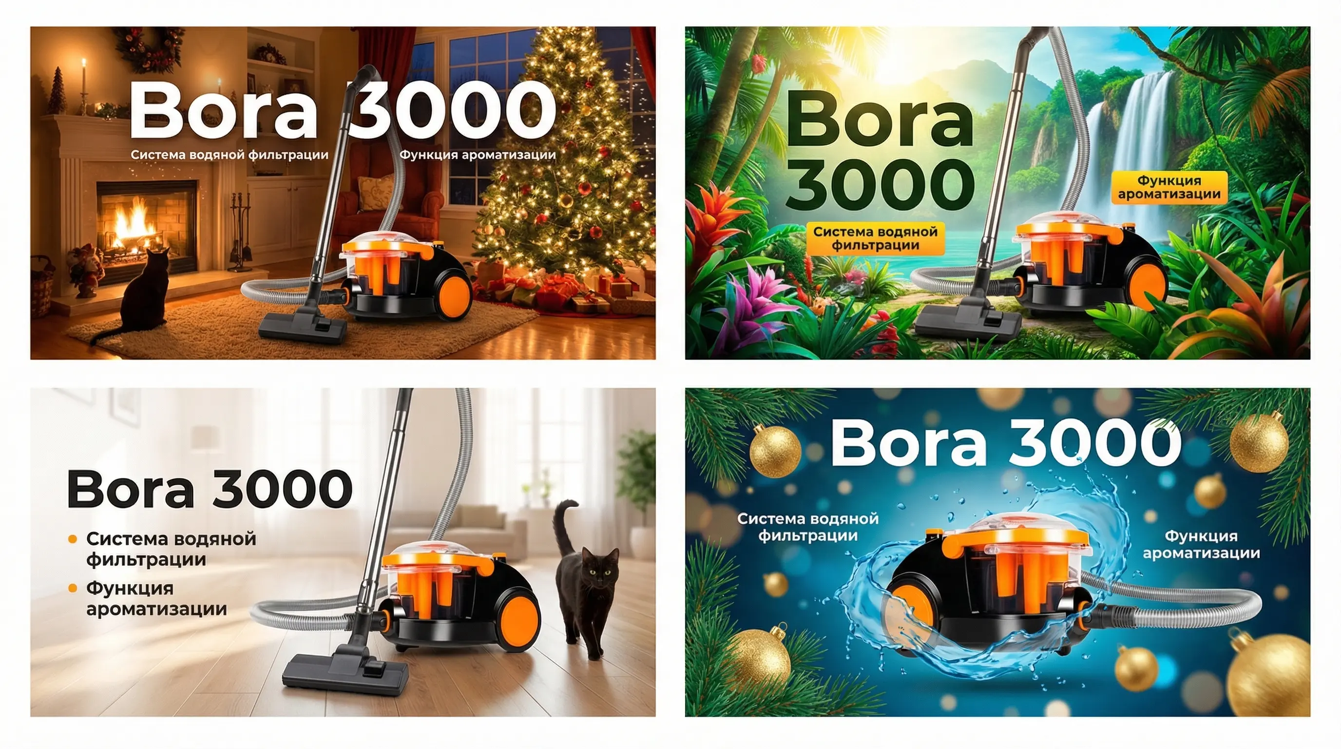 Не просто фото, а готовая инфографика со смыслами. Загружаете сырые фото — получаете дизайн с УТП, который продает. Мощность платформы: до 10 000 карточек в день.