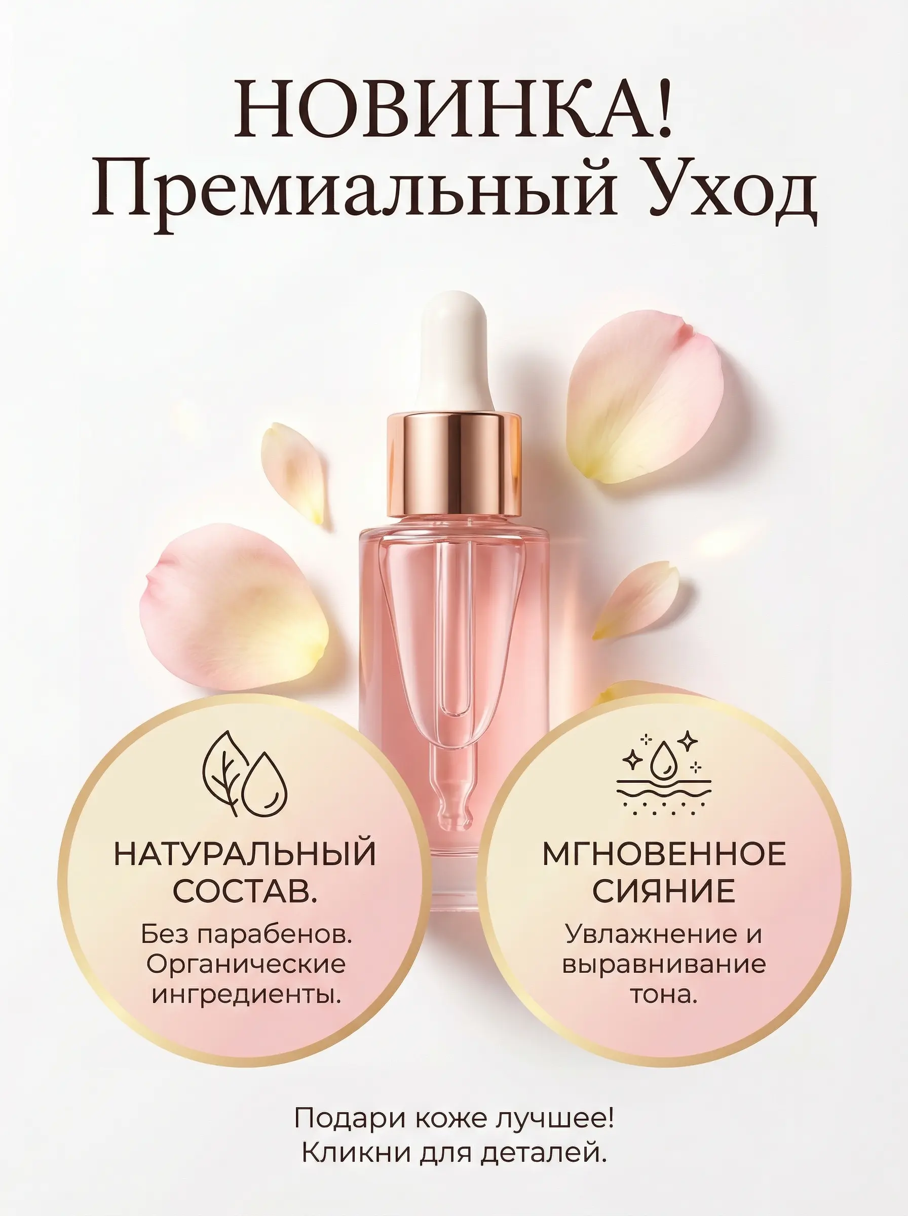 Текст не перекрывает товар. Умная сетка расставляет элементы так, чтобы сохранить фокус на продукте.