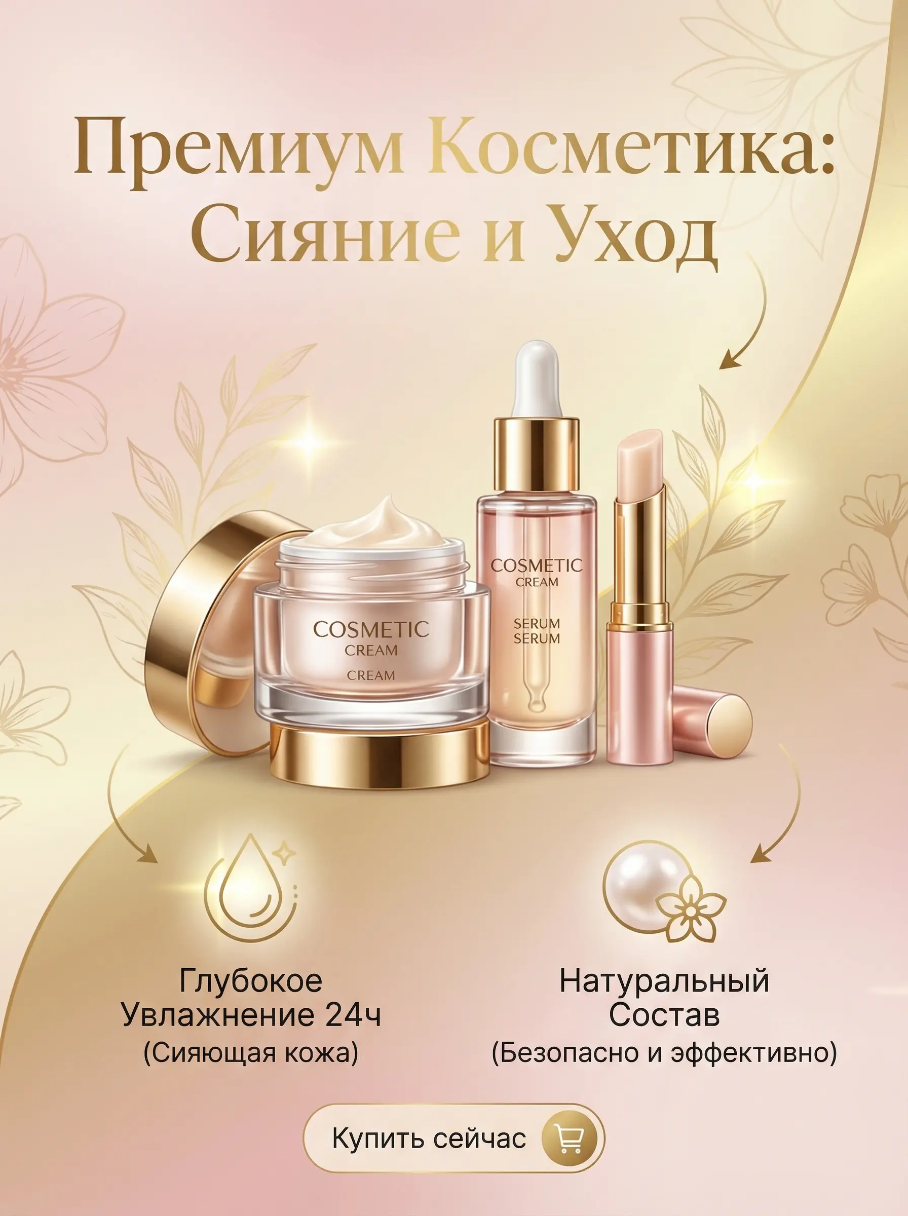 Нейросеть сканирует фото, определяет категорию (одежда, техника, косметика) и подбирает подходящий стиль дизайна.
