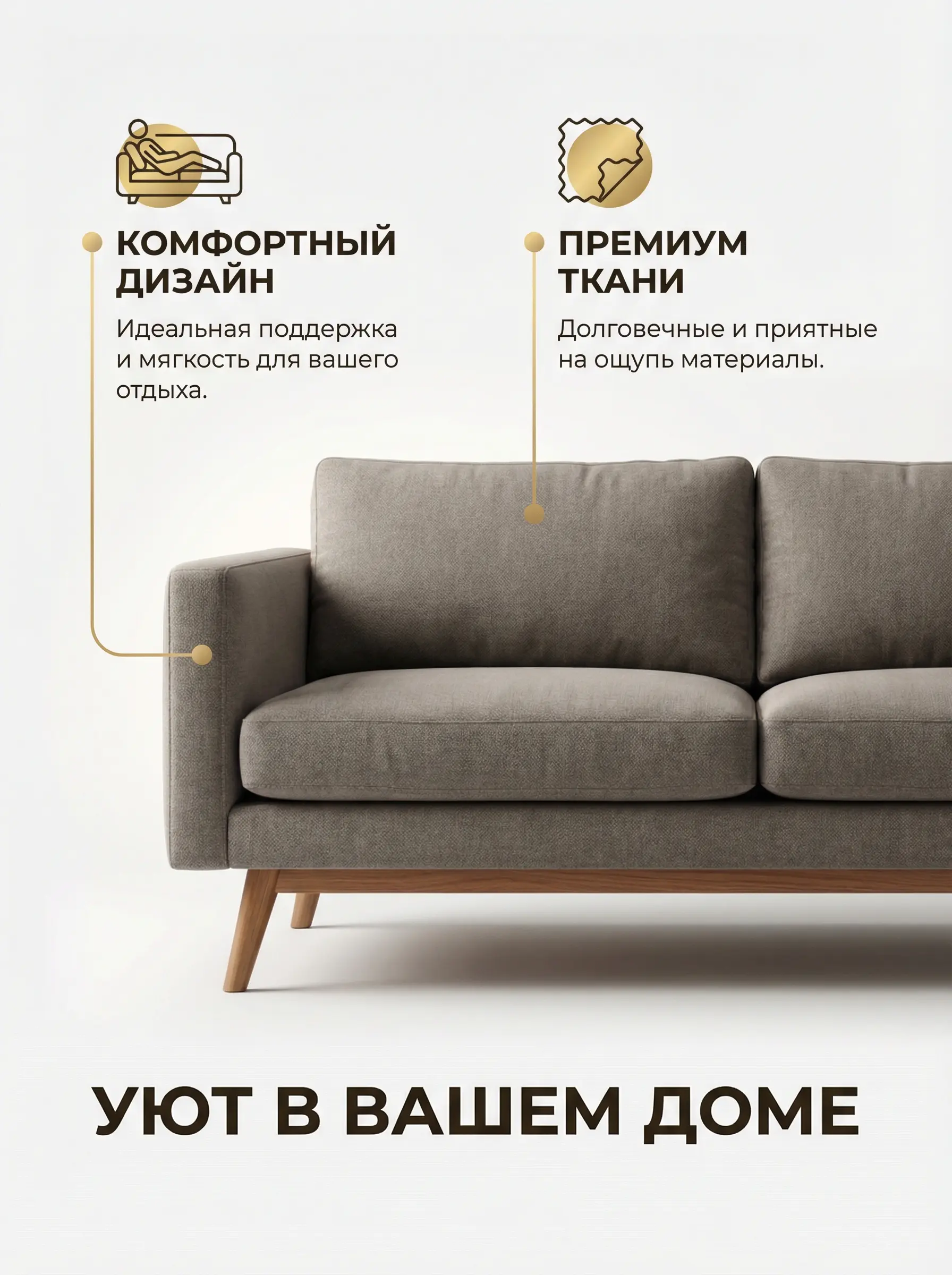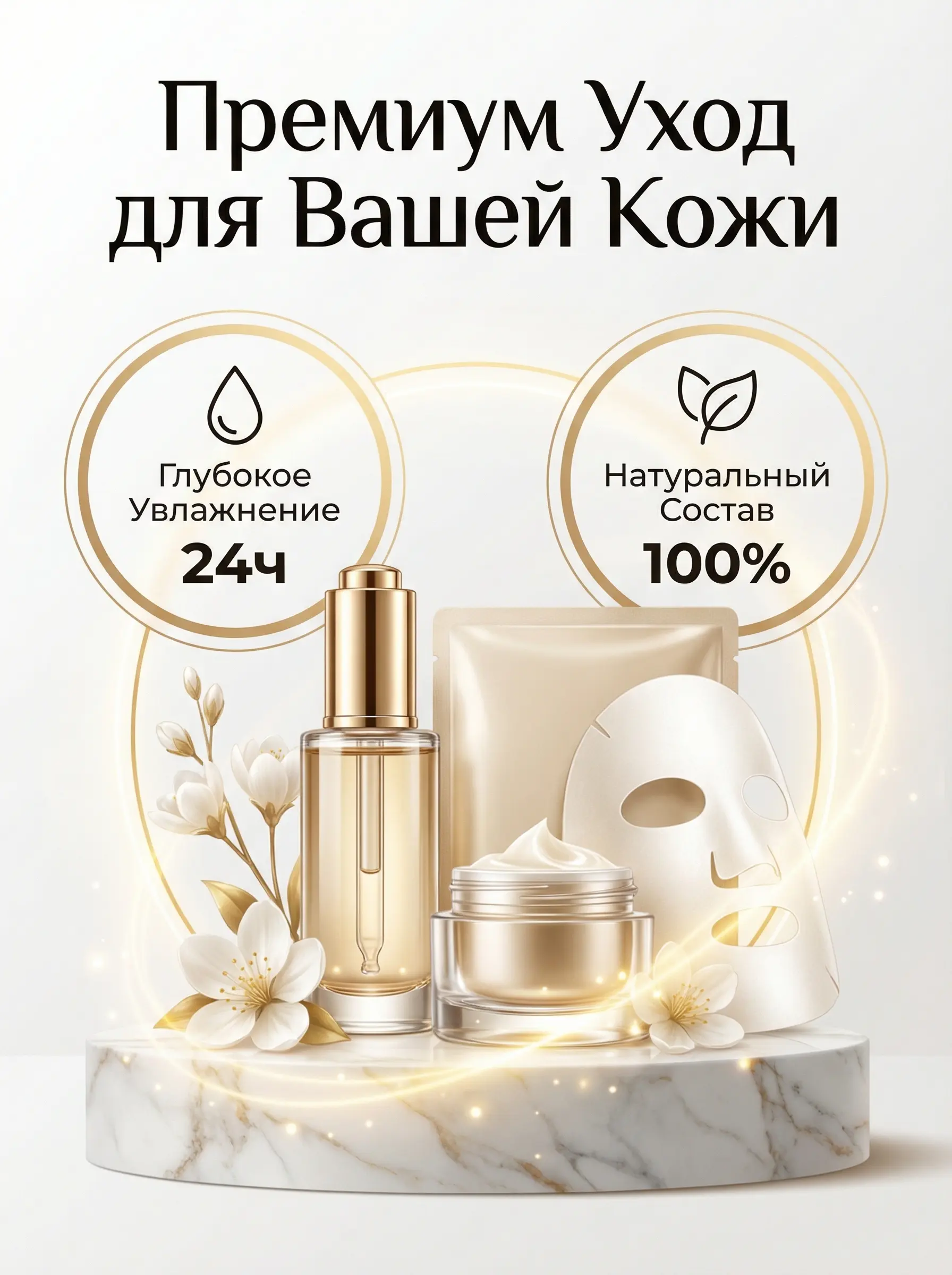 Мы знаем боли клиентов. AI пишет продающие тезисы: "Не скатывается", "Держит заряд 24ч", "Хлопок 100%" и размещает их на фото.